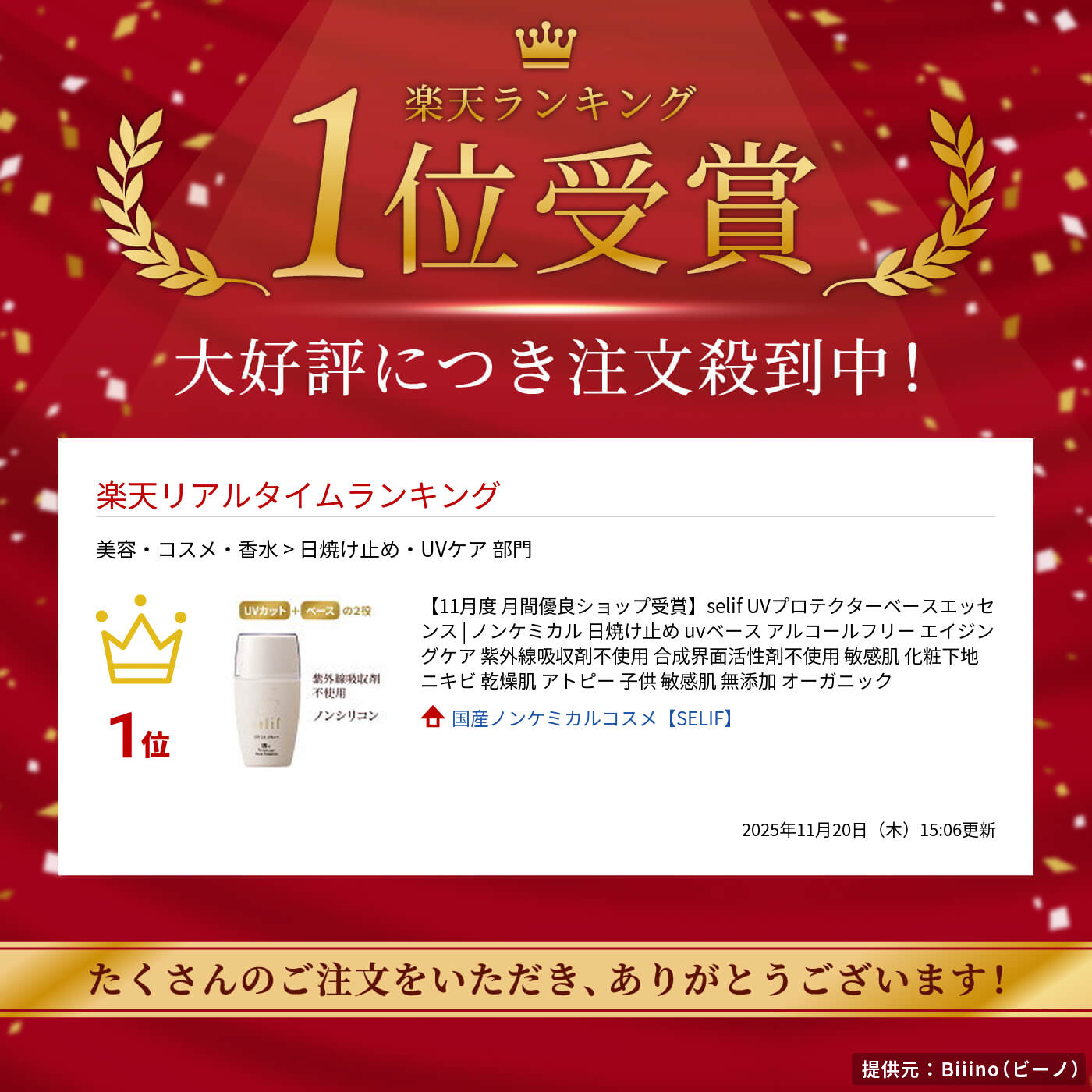 【11月度 月間優良ショップ受賞】selif UVプロテクターベースエッセンス | ノンケミカル 日焼け止め uvベース アルコールフリー エイジングケア 紫外線吸収剤不使用 合成界面活性剤不使用 敏感肌 化粧下地 ニキビ 乾燥肌 アトピー 子供 敏感肌 無添加 オーガニック
