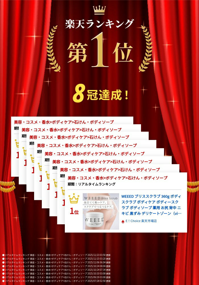 【楽天スーパーSALE 10%OFF】WEEED ブリススクラブ 360g ボディスクラブ ボディケア ボディースクラブ ボディソープ 薬用 お尻 背中 ニキビ 黒ずみ デリケートゾーン(vio)ニキビ対策 ギフト weed ウィード うぃーど ※お一人様3点まで 数量限定