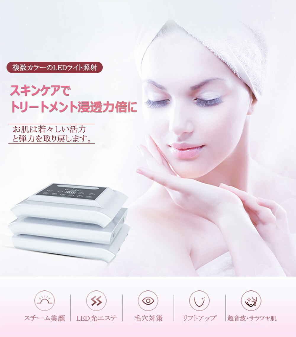 led 光 美容器 蒸気美顔 自社特有の6Aパワー1台多役 ジェル フェイスライン 乾燥 目元 表情筋 本格フォトフェイシャル 家庭用 美容家電 フェイス エイジングケア プレゼント 敬老の日へ
