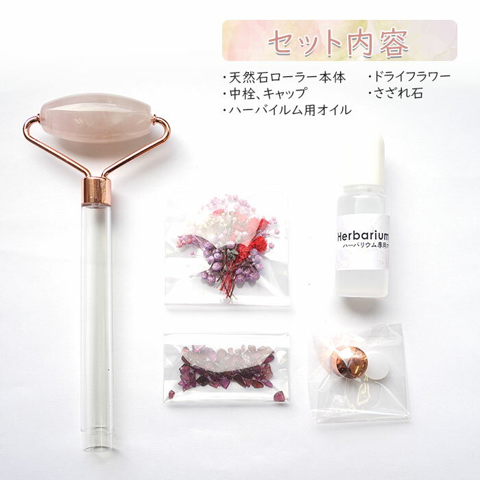 【手作りキット】天然石 ローラー フェイスローラー ハーバリウム マッサージローラー 美活ローラー 天然石ローラー リンパマッサージ 小顔 リンパ流し さざれ石 夏休み 天然石 パワーストーン フェイシャルケア