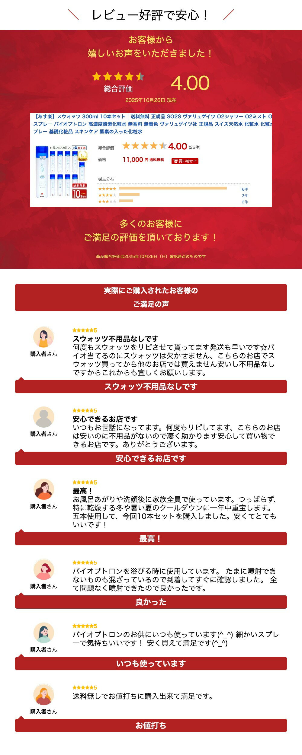 スイス生まれの『酸素の入った化粧水』ミストスプレータイプ 「スウォッツ」10本セット! ■ スイスの山脈から湧き出る天然水に通常の5倍もの純粋な酸素を 高圧注入した高濃度酸素水です。 ■ 無香料、無着色、防腐剤を使用していない100%天然成分。 ■ 香料や添加物を一切使用しない天然水だけのピュアな酸素水スプレーです。 ■ 毎日のスキンケアはもちろん、日焼け後のお肌も落ち着きよく スポーツ後のお肌も...