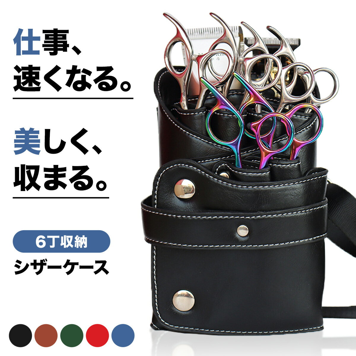 【マラソンポイント2倍】シザーケース 美容師 トリマー 花屋 ストラップ ベルト おしゃれ 大容量 6丁 軽量 トリミング 持ち運び 斜め掛け 腰掛け ブラック ブルー ブラウン グリーン レッド