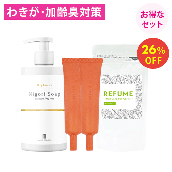 商品説明 商品名 Highness リバランスデオ(2本)+Highness 薬用にごりソープ+REFUME インナーケアサプリメントのセット 商品区分 <リバランスデオ>医薬部外品 <薬用にごりソープ>医薬部外品 <REFUME>ブドウ葉エキス加工食品 生産国日本製 内容量 25g×2/300ml/90粒 商品概要 【リバランスデオ】肌の「菌バランス」に着目した天然柿由来のデオドラントラインHi...
